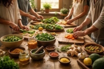- die gemeinsame Zubereitung und Essen von ayurvedischen Gerichten